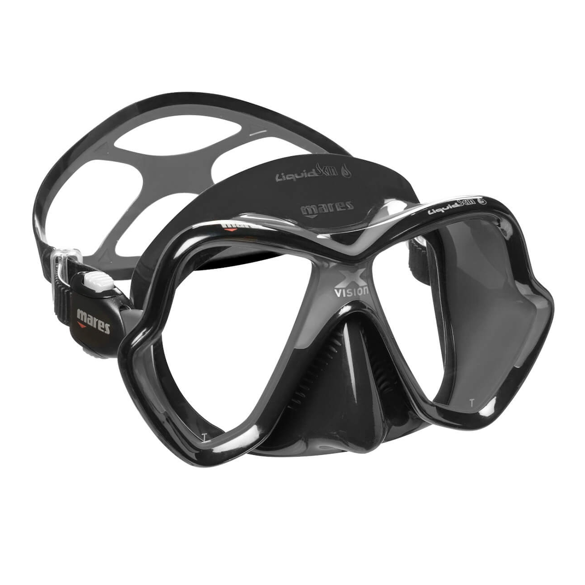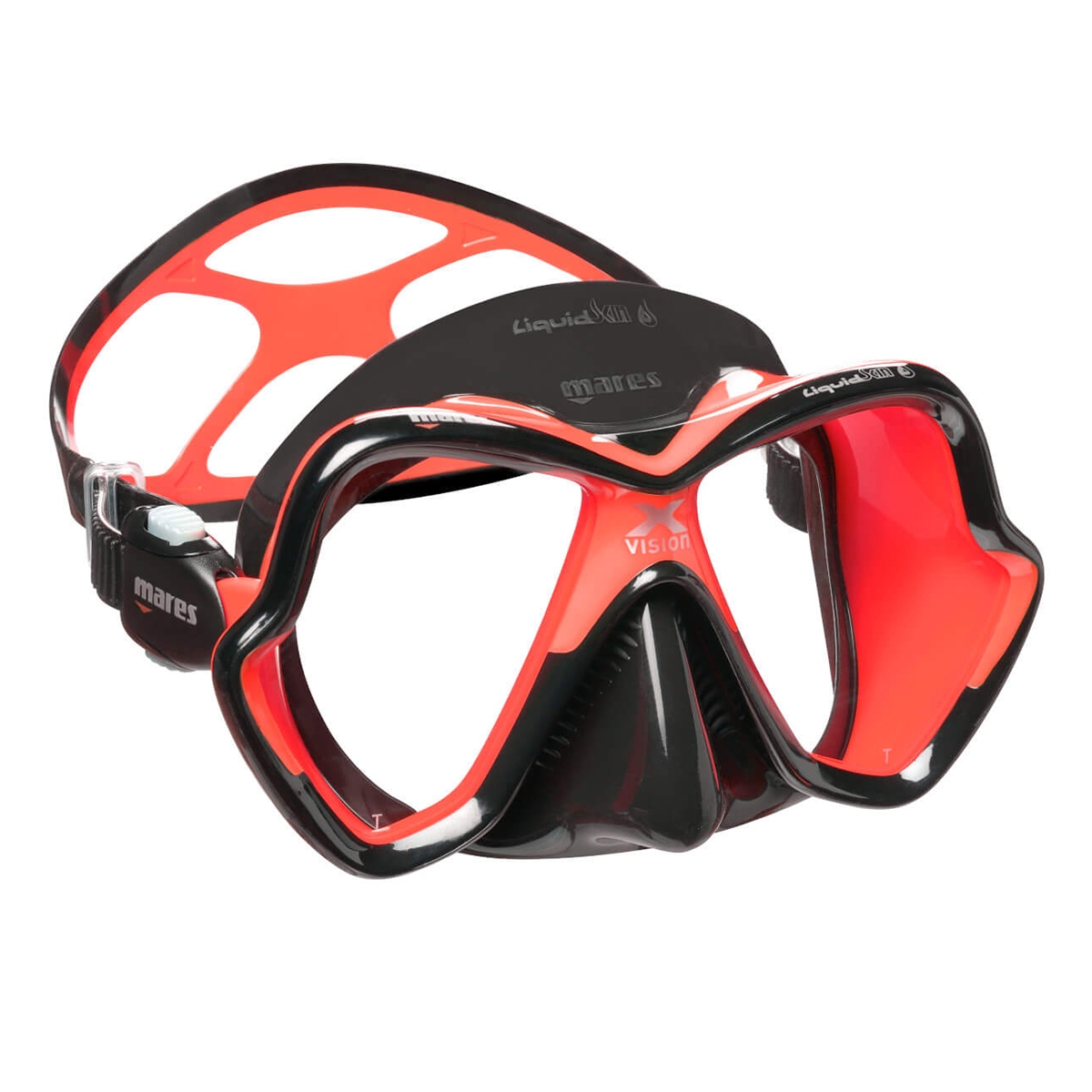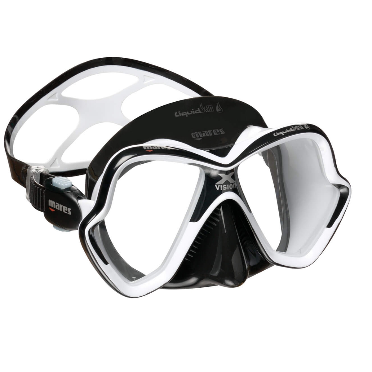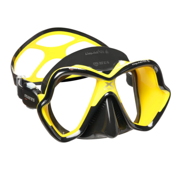 Mares X-Vision Diving Mask. Still one of the most popular dive masks on the market over 20 yrs since the original X-Vision design concept was launched. The lastest version maintains all those principles of offering low volume yet great vision with the shaped and angled lenses and the silicone skirt has just become softer and more comfortable.