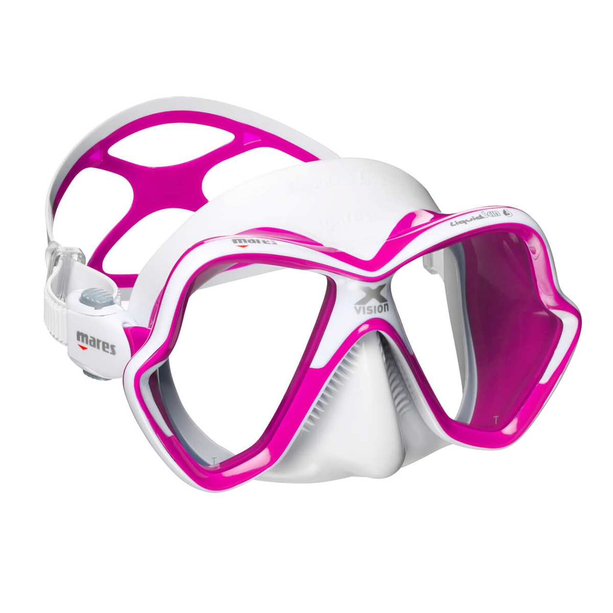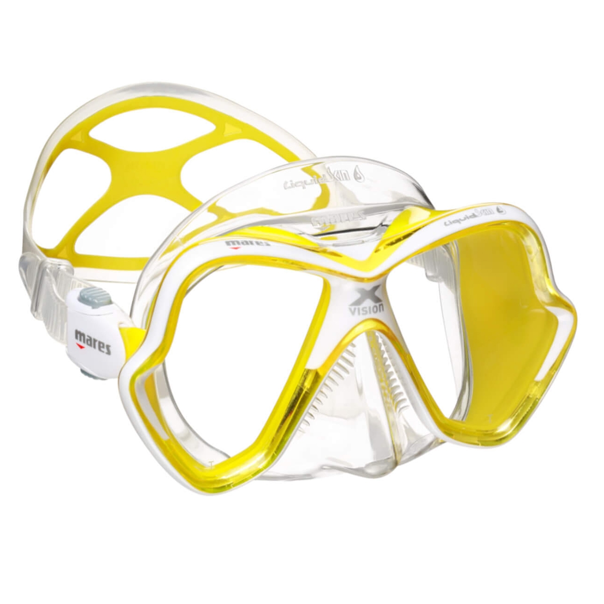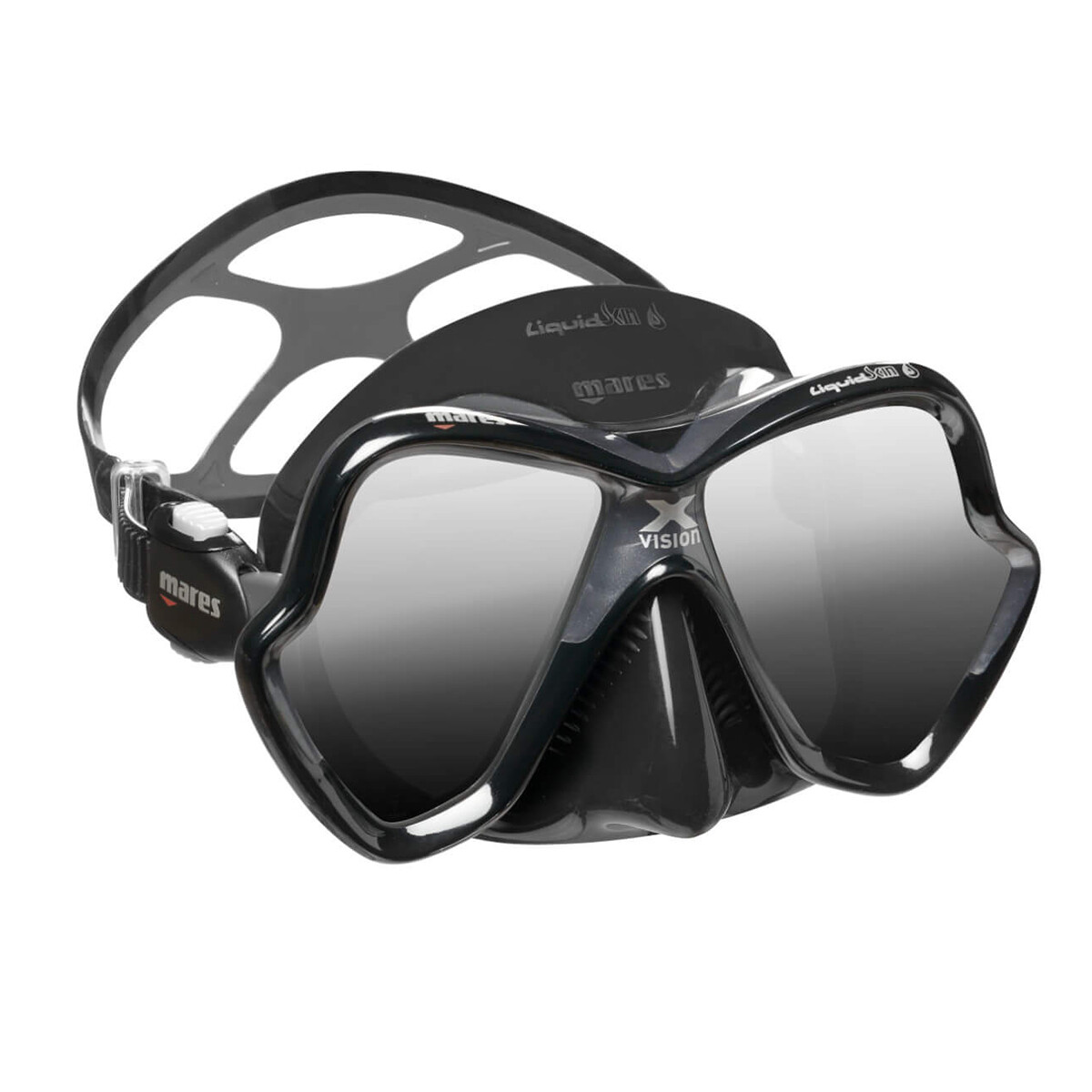 Mares X-Vision Diving Mask. Still one of the most popular dive masks on the market over 20 yrs since the original X-Vision design concept was launched. The lastest version maintains all those principles of offering low volume yet great vision with the shaped and angled lenses and the silicone skirt has just become softer and more comfortable.